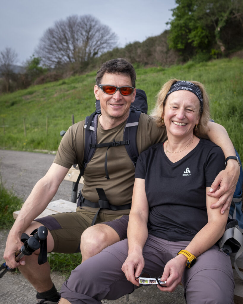 Claudia and Wolfgang are from Austria. Claudia said they started in Bilbao and will reach Santiago. Wolfgang was not so sure.